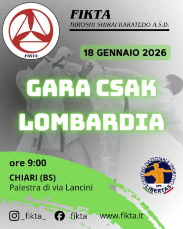 10 Gennaio 2026Inizio alle 15:30 CORSO AGGIORNAMENTO ARBITRI SARDEGNA – THIESI (SS) – 10 GENNAIO 2026 Scopri di più 11 Gennaio 2026Inizio alle 09:00 STAGE REGIONALE EMILIA ROMAGNA – FORMIGINE (MO) – 11 GENNAIO 2026 Scopri di più 11 Gennaio 2026Inizio alle 09:00 STAGE REGIONALE LOMBARDIA – CASTELLANZA (VA) – 11 GENNAIO 2026 Scopri di più 18 Gennaio 2026Tutto il giorno 1a KIDS CUP TOSCANA – 18 GENNAIO 2026 Scopri di più 18 Gennaio 2026Tutto il giorno GARA CSAK LOMBARDIA – CHIARI (BS) – 18 GENNAIO 2026 Scopri di più 18 Gennaio 2026Inizio alle 08:30 STAGE REGIONALE SARDEGNA – PORTO TORRES (SS) – 18 GENNAIO 2026 Scopri di più Vedi tutti gli eventi