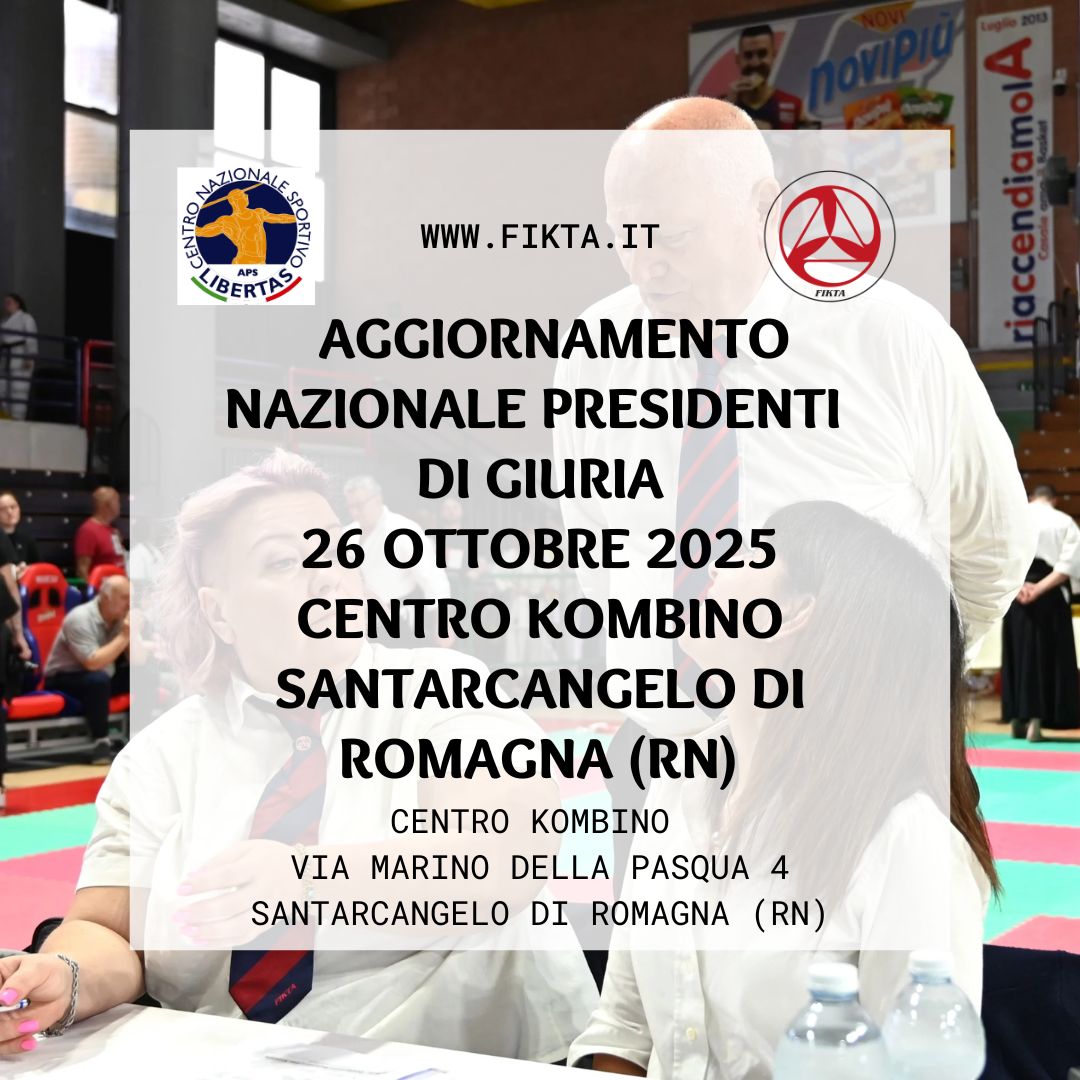 CORSO AGGIORNAMENTO TECNICI E UDG PIEMONTE VALLE D'AOSTA LIGURIA - 4 OTTOBRE 2025 - SAN RAFFAELE CIMENA (TO) Abbiamo il piacere di segnalare che il prossimo sabato 4 ottobre 2025 presso il Centro Arti Marziali J.K. in Via…