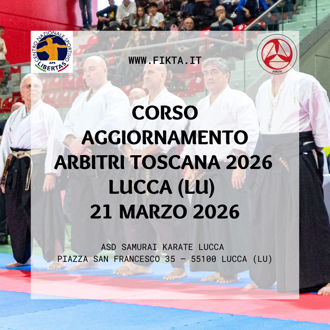 Segnaliamo che in data 21 marzo 2026 si terrà il prossimo incontro del Corso aggiornamento arbitri regionale Toscana Fikta .