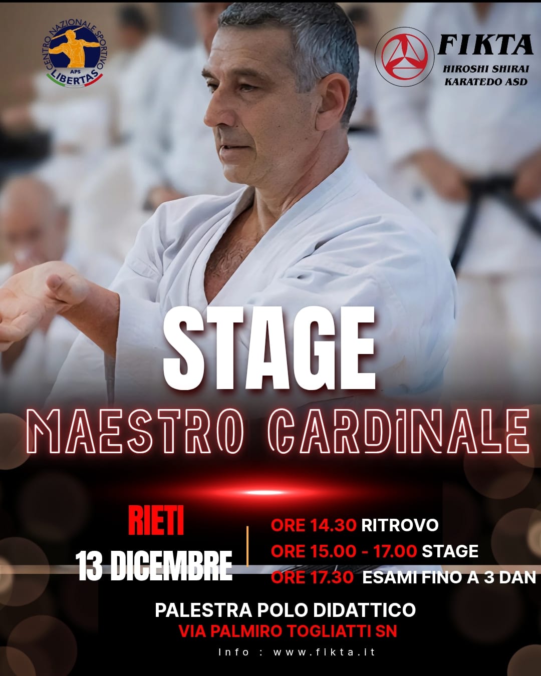 STAGE LAZIO + SESSIONE ESAMI FINO A 3° DAN – RIETI (RI) - 13 DICEMBRE 2025 Abbiamo il piacere di informare che sabato 13 dicembre 2025, presso la Palestra del polo didattico Alberto Bianchetti, Via Palmiro Togliatti sn…